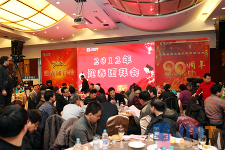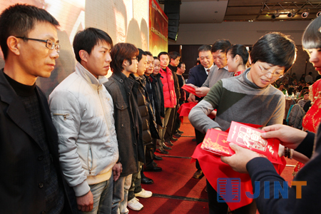 团拜会上,公司对2011年在一线岗位辛勤耕耘、业绩突出的优秀员工和先进班组进行了表彰,林坚为先进班组颁奖,马卫东、陈雪英、徐峰等高管为优秀个人颁奖。