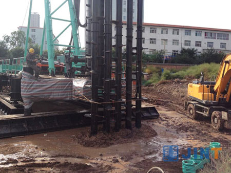 日前,从山西太原南海集团工程部传来消息,上海金泰最新推出的ZKD85-5五轴钻机在其公元时代城项目桩基础工程试桩首秀时表现不凡,以平均65分钟的速率完成单幅2.4mx26m(成墙宽2.4米,深26米)的搅拌墙施工,与传统三轴搅拌设备相比,施工效率提升一倍以上,得到了业主高度赞誉。