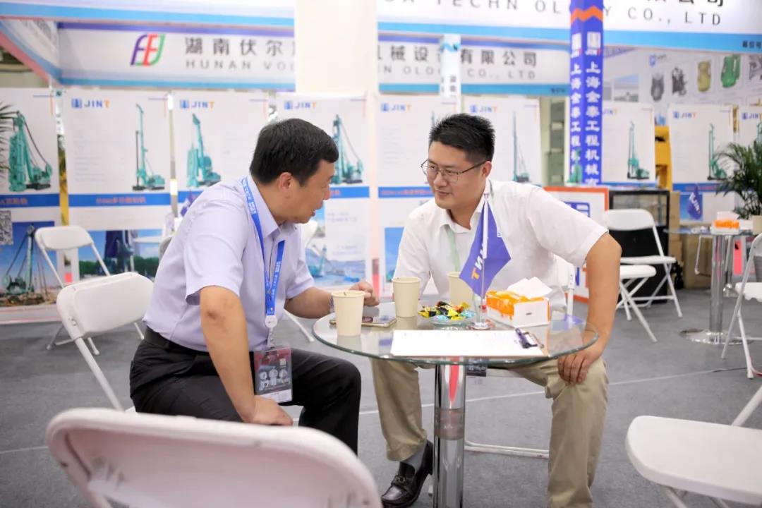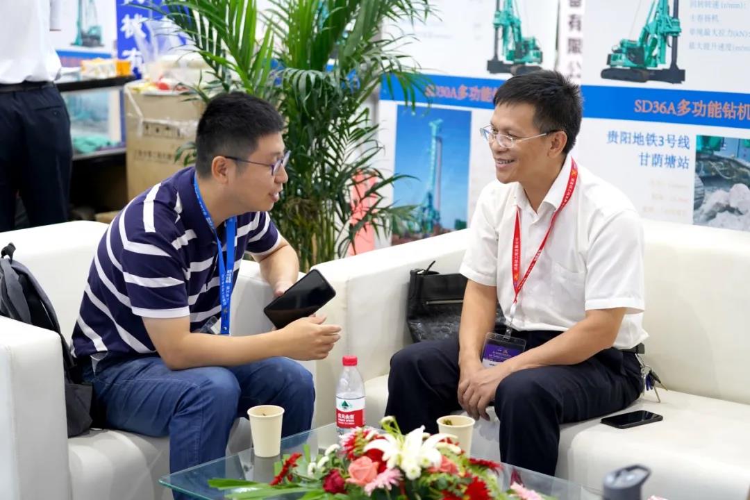 会展期间,公司总经理黎隶万、副总徐峰、徐建成、总工程师李道华等与行业协会专家、桩工机械制造厂商以及基础施工企业用户进行了多方交流。