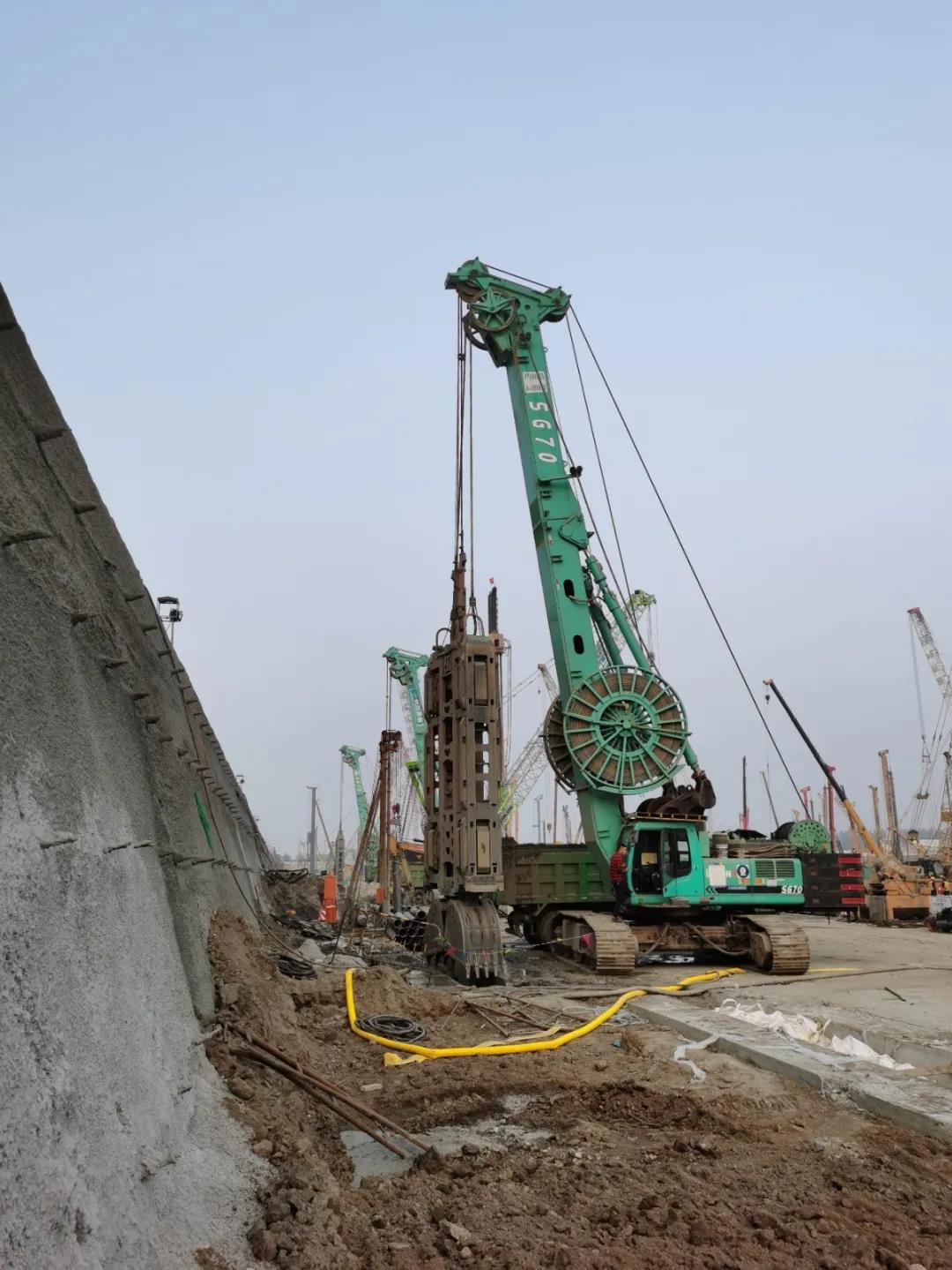 该站点铁路核心区最大埋深约 32.9米,西咽喉最深约45米,地下总建筑面积约 128万平方米,出土量将达到 1300万立方米,相当于七个北京昆明湖那么大。开工至今,20台金泰SG系列液压连续墙抓斗均在项目中表现突出,已然成为该项目地连墙施工主要输出设备,同时,45m深,1.2m厚的槽单爪平均用时8小时,也取得成槽机综合施工第一的好成绩。